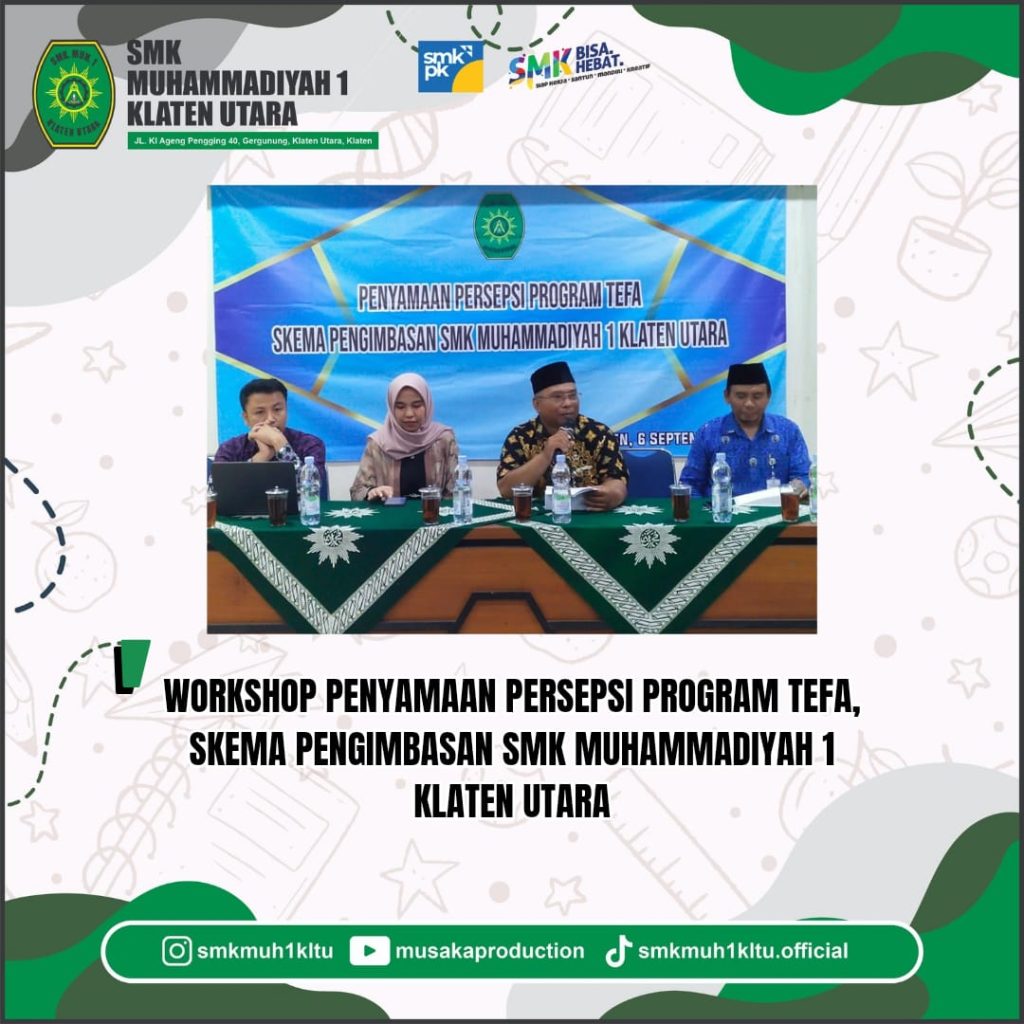 SMK Muhammadiyah 1 Klaten Utara akan mengadakan Workshop Teaching Factory (Tefa) dengan Skema Pengimbasan. Ini adalah inisiatif sekolah untuk memperkuat Teaching Factory di SMK sekitar serta meningkatkan kompetensi siswa dan guru.